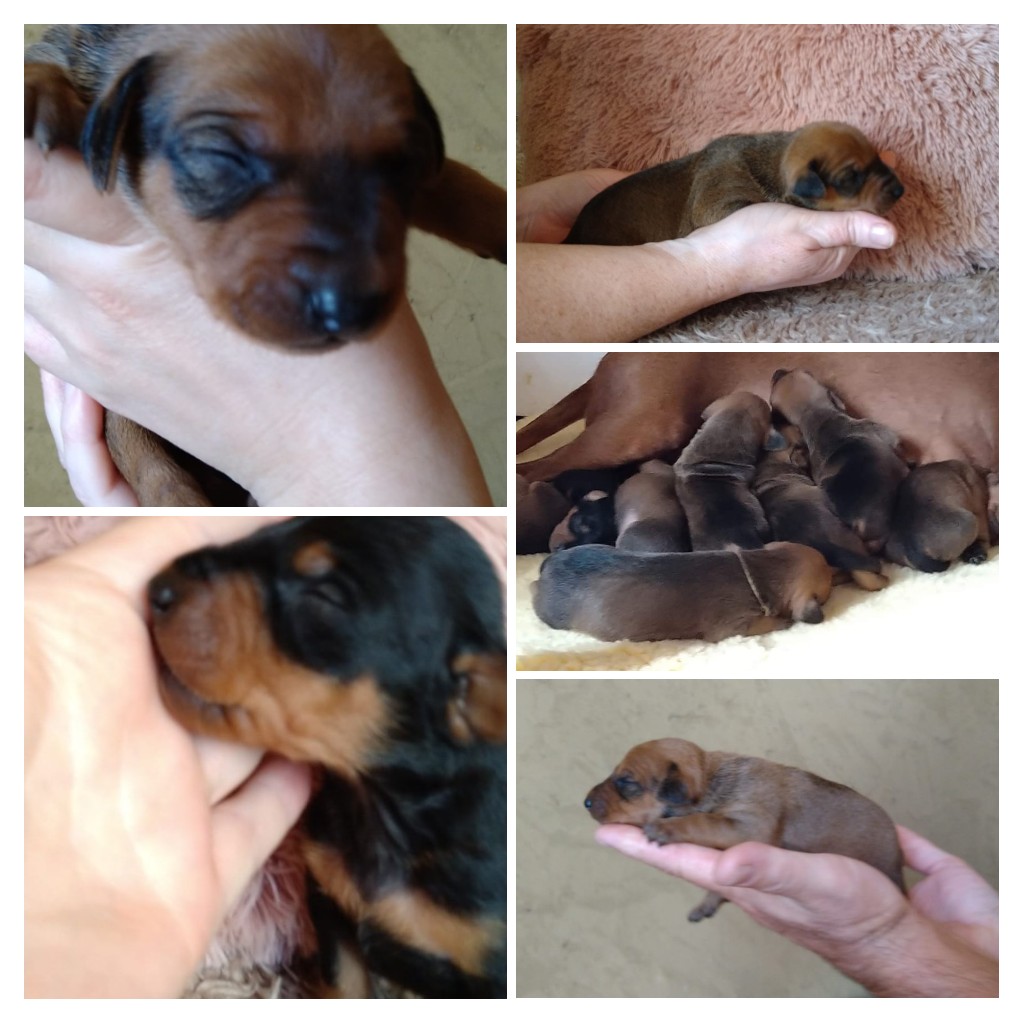 Štěňátek je 8 - 3 červené holčičky a jeden pejsek černý s pálením a 4 červení.